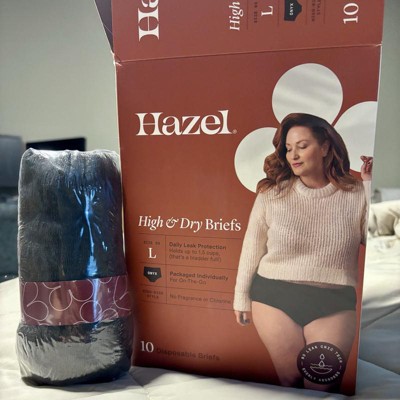 [This review was collected as part of a promotion.] I bought Hazel high and dry briefs underwear box to try it.These are women’s disposable underwears.The box consists of neatly wrapped plastic covered 12 disposable briefs.The color of these underwear’s are black and the fabric is strechy.I ordered the size medium and it’s true to my size as I measure my size and then bought it.I usually wear size 8 pants.I have sensitive skin and looking for something with no fragrance and latex free as well.These are perfect for postpartum or managing incontinence.There are moisture wicking,odor eliminating and quick drying.I would recommend these briefs! I received an incentive to write this review.