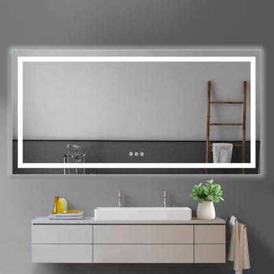 Vanity Mirror with Lights, 36'' x 30'' LED Wall Mounted Bathroom Mirror, Clock&Temp, Beveled Edges, Memory Function, Anti-Fog, Silver
