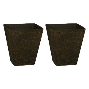 HC Companies 16 Inch Tahoe Indoor and Outdoor Aged Wood and Stone Look Square Planter Pot with Removable Drain Plug, Falcon Brown (2 Pack)
