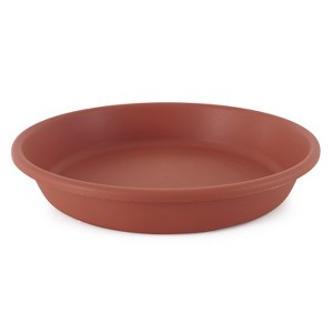 The round plastic saucer is designed to perfectly match your classic planter. Match the color exactly or mix and match products with a range of natural and traditional colors. Just like the planters, these drainage trays are durable meaning they won't fade in the sun, they won't crack, and they won't leak.