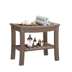 HDPE -Resistant Construction: Premium high-density polyethylene (≥0.95g/cm³ density)|IPX4 waterproof certified|No swelling/warping/splinters.330lbs ADA-Compliant Load: ANSI/B101.3 non-slip surface|2.5mm deep grooves|Passes F1561 stability test.Built-In Storage Shelf: 14"x10" rustproof rack|Holds bath essentials/towels|18" compact height fits small showers.Tool-Free 5-Min Assembly: Pre-drilled holes + corrosion-proof hardware|Clear QR video instructions.Multi-Space Therapeutic Seat: Elderly shower bench|Shaving stool|Therapy seat|Fits bathrooms/RVs|Indoor/outdoor UV-resistant.