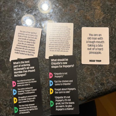 - Cards Against Humanity’s HEAD TRIP is a new cooperative party game about getting inside your friends’ heads while they answer ridiculous questions from unexpected perspectives.