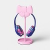 This headphone stand is really cute with a one sided bow at the top and a hook on the back. It's very lightweight and seems a bit flimsy, but holds the headphones just fine. It has a tray at the base that could hold small accessories too.