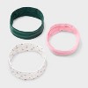 Three-piece headwrap set from Wild Fable™. Includes a white ribbed headwrap with light pink and green floral prints, plus two solid-color pieces in dark green and light pink. Made from polyester with elastic for a flexible fit that keeps hair off your face during any activity. Perfect for securing and styling hair and suitable for all hair types.