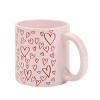 Show your love with this charming pink 16 oz ceramic mug, featuring an all-over print of hearts. Perfect for your favorite hot beverage, this mug offers a festive and heartwarming touch to your drinkware collection. Crafted from high-quality stoneware, it ensures durability and is dishwasher safe for easy cleaning. Its thoughtful design and practical functionality make it a must-have for any occasion.