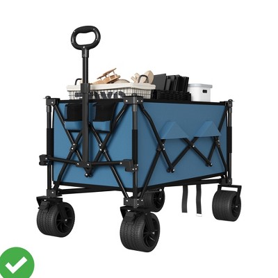 - Pops open in seconds—no tools—then folds down to just 9" × 13" × 26.8", so the wagon stashes easily in a closet, garage, or car trunk.