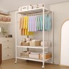 - Smooth Rolling Wheels with Locks Equipped with four 360° swivel wheels for easy movement across rooms. Two lockable wheels keep the garment rack securely in place when stability is required.