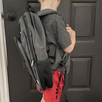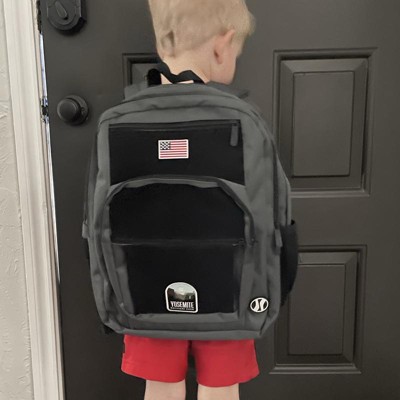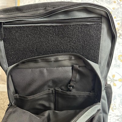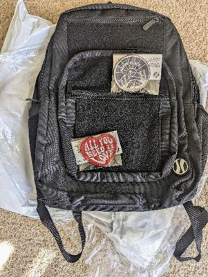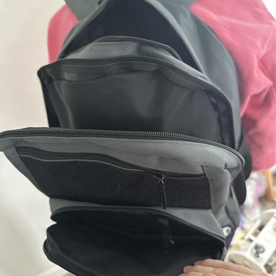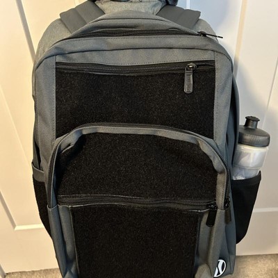 [This review was collected as part of a promotion.] This is a very well made backpack. It is very versatile and FUN for kids to collect different pataches to apply to the black areas of this gray and black backpack. There are 3 zippered picked in the front ranging in sizes and then the larger main pocket toward the back. My son has his lunch box in it in the pictures and there is still so much room left. Each side has an area to fit a water bottle. It is comfortable on his shoulder and has adjustable straps. I received an incentive to write this review.