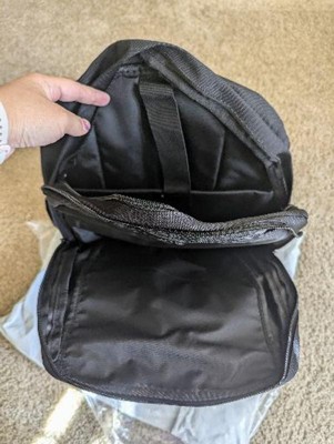 Black fleece backpack with multiple pockets