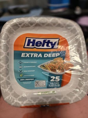 [This review was collected as part of a promotion.] The Hefty extra deep disposable plates are a good choice for those who require extra capacity without the worry of spills. These plates were very useful for serving saucy dishes, salads, and large portions.