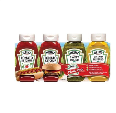 - Heinz Ketchup, Sweet Relish & Yellow Mustard Grill Pack includes all your favorite condiments