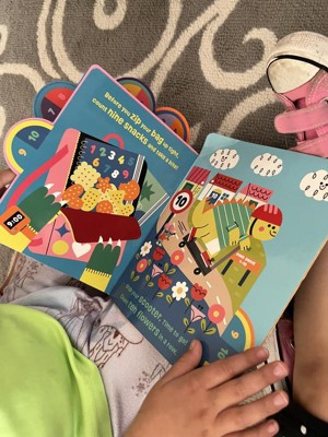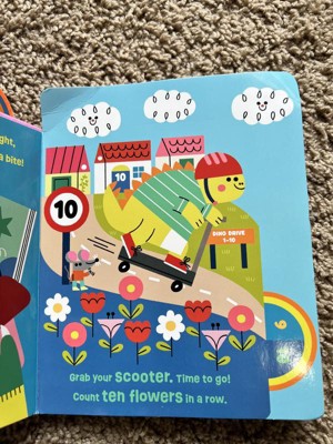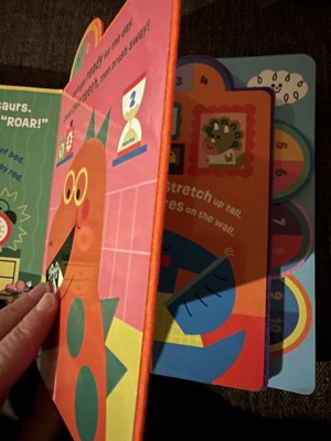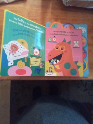 Such a fun and cute book for little ones. It features an adorable dinosaur and covers several topics like brushing your teeth, getting dressed and more all while covering counting. The only downside is its basically felt and cardboard, very thin and not well made. It would be easy for a toddler to damage or bend.