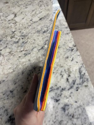 My kids liked the book, and it’s vibrant and engaging. The book is made of a thick paper/thin coated cardboard over felt. While the felt adds extra texture and is easy for little hands to grip and flip pages, it also bends and makes crinkles in the book easily. I don’t see this standing up well over time against kid wear and tear, but for $5, it’s worth the buy.