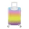 Brighten your travels with this rainbow gradient Hello Kitty 20" rolling luggage, featuring a stylish gold Hello Kitty face patch. This luggage offers smooth mobility with 4 wheels and a retractable handle, while corner guards provide extra durability. Crafted from sturdy ABS and PC film materials, it's designed for lasting use and easy maintenance. Measuring 20" H x 13.5" W x 8.5" D, this luggage is the perfect blend of function and fun for Hello Kitty fans.