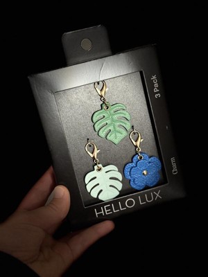 Bring a touch of nature everywhere you go with the Hello Lux 3 Pack Plant Charms. These leafy and floral designs add a fresh, stylish accent to your favorite accessories, from keychains to wristlets and crossbodies. The secure lobster claw clasp makes it easy to attach or swap charms in seconds, while sturdy metal hardware ensures they hold up to everyday use. With two soft green leaf charms and a pretty blue flower charm, this set adds a calm, botanical touch to any look.