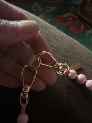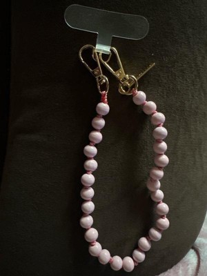 [This review was collected as part of a promotion.] This Hello Lux Wristlet Phone Strap is so cute! It's made out of painted wood beads. The light pink color is so pretty and the strap feels thick and sturdy. You can use this with basically any phone case since it comes with a clear strap attachment that slides into your phone case then comes out near the charging cable port. The two clips are metal and seem like they stay clipped shut securely. I also like that if your phone case has tabs for the straps to attach, you can attach it directly to the phone case itself. The only downside to this accessory, is that I'm sure the clear piece that goes inside your phone case will wear out over time. Overall, it's cute and handy!