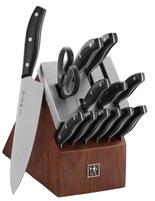 Love to use of the self sharpening block. The knives are high quality and look great on the counter. There is some damage to one knife but still performs outstanding.