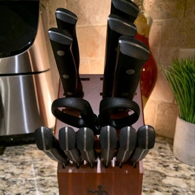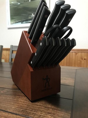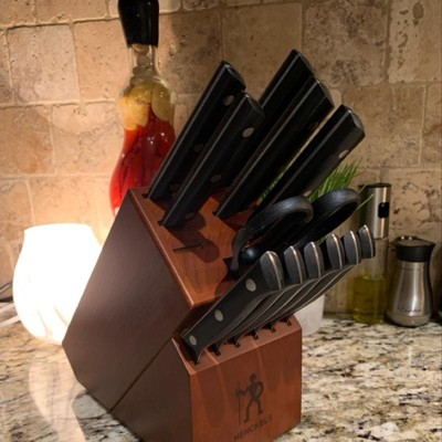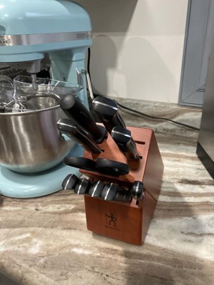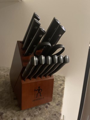[This review was collected as part of a promotion.] Love the look & style. Have used Henckels for many years. Upgraded my previous set to a new one after kitchen remodel. Gifted the older set to my daughter - still cuts great!!