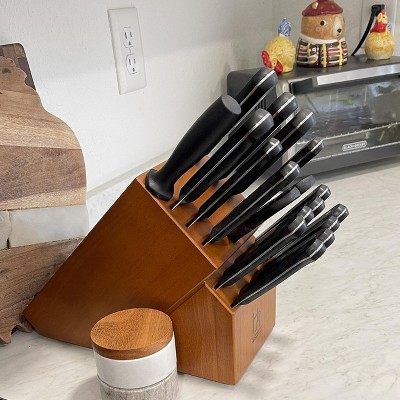 HENCKELS Razor-Sharp Solution 18-pc Knife Set with Block, Chef Knife, Steak Knife, Utility Knife, Dark Brown, Stainless Steel, German Engineered