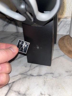 • Set includes 3" pairing knife, 5" serrated utility knife, 6" utility knife, 8" chef's knife, kitchen shears, black 5-slot hardwood knife block