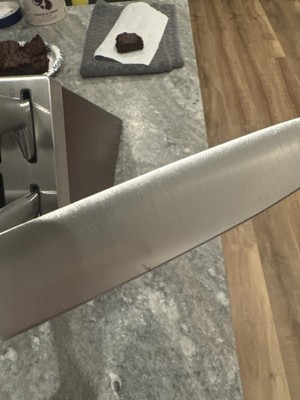 Like them but, wish we had bought a bigger set. The only thing we are not happy about was how the block was glued together. There is a large gap between the two pieces and looks like a cheap set sitting on the counter. (I tried to add photos but couldn't add them here.)