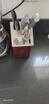 This knife set impresses guests with its self-sharpening feature, ensuring blades remain sharp and ready for use. The knives are well-balanced, lightweight, and made from high-quality materials, making them a joy to use in any kitchen. Guests appreciate the sleek design of the block, which fits nicely on countertops, and the variety of knives included, perfect for all cooking tasks. Overall, this set enhances the cooking experience and adds elegance to kitchen decor.