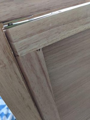 I'm not sure there is any real wood in this product. It is the flimsiest piece of furniture I have seen. Side pieces are pictures of wood-- not wood at all. Top is scratched.