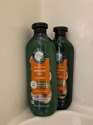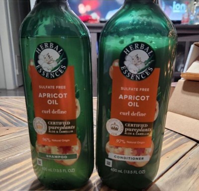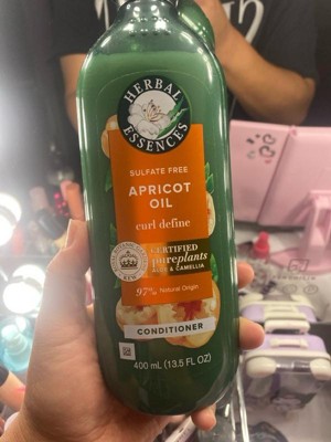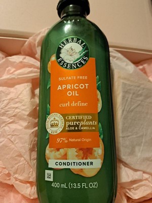 Looking for conditioner for your hair that's deeply nourishing yet surprisingly lightweight? Herbal Essences Sulfate Free Apricot Oil Curl Define Conditioner is formulated to give you touchably soft, smooth, and moisturized curls-with a weightless feel. It contains: Luscious apricot oil Pure aloe vera Lightweight camellia flower oil NO sulfates, parabens, dyes, or phthalates Meet camellia flower oil. Unlike other commonly used ingredients that can make hair feel heavy, camellia flower oil is amazingly lightweight. It mimics the natural oils found in healthy hair-the oils that our hair tends to lose when washed. That makes camellia flower oil one of nature's most effective yet lightweight nourishers. You'll feel the difference as it instantly soaks in, leaving you with weightlessly soft hair. With the scents of tropical fruits, sugarcane, and white musk, Herbal Essences Apricot Oil Curl Define Conditioner is made especially for all types of curly hair. The plant ingredients inside are certified by the world's leading experts at Royal Botanic Gardens, Kew. And of course, it's Certified PETA Cruelty-Free. How to Use: 1. Apply generously to wet hair, working through every strand. For longer or thinker hair, leave in 1 - 3 minutes before rinsing2. Rinse thoroughly 3. For best results, use with the matching Herbal Essences Sulfate Free Apricot Oil Curl Define Shampoo Our plant-inspired bottles are: Our 13.5 fl oz bottles are made with 25% less plastic (*vs. Herbal Essences Smooth Rose Hips 13.5 fl oz) The raised dots and lines at the front of the bottles are designed to help consumers with low vision differentiate our shampoos from conditioners.