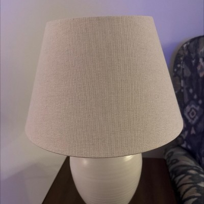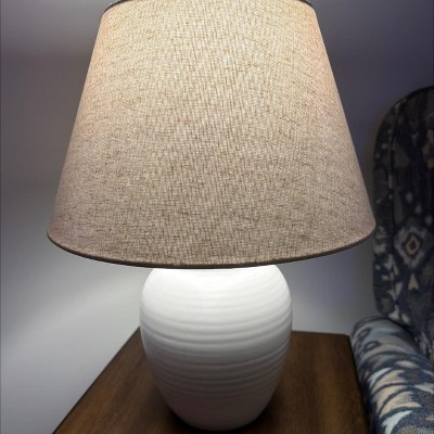 Love this table lamp with beige shade - tranquil ceramic modern lamp. Perfect size 16” tall