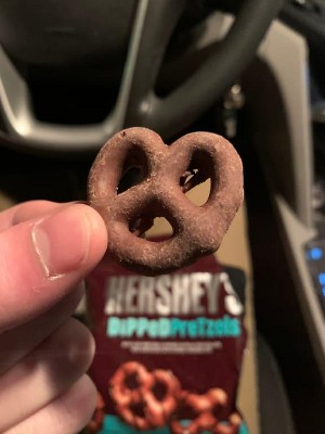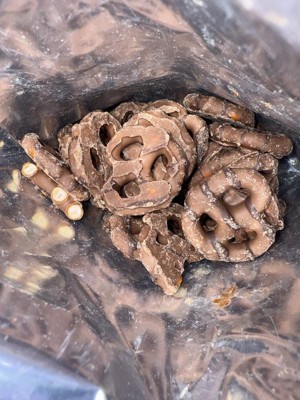 I got a bag with no dark chocolate drizzle on the pretzels, first time it happened but I buy the heck Out of these.