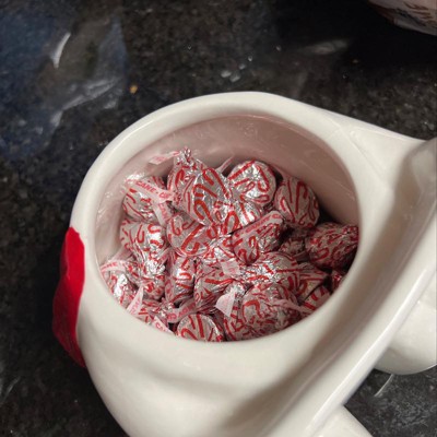 These HERSHEY'S KISSES candy cane flavored mint candies are a refreshing twist on the classic Christmas candy treats you already know and love, individually wrapped in festive red and silver foils. Kosher and gluten free minty HERSHEY'S KISSES candies with stripes and candy bits are a snack that delights kids and adults alike. Fill your candy dishes, lunch boxes and snack drawers at home and work with these delectable minty morsels, or use them as stocking stuffers, Christmas tree decorations and party favors that perfectly set the Christmas mood. HERSHEY'S KISSES candy cane flavored candies are easy to enjoy anywhere, whether you're taking a snack break at work or on the go. Get ready to savor each decadent bite of creamy minty candy, and don't forget to save a few for your family's next holiday movie marathon or gingerbread house building event! Give these treats out at holiday gatherings and gift exchanges or liven up your home or cubicle with delicious HERSHEY'S KISSES candy in bright, seasonal foils. If you're feeling adventurous, try placing red and white striped candy cane HERSHEY'S KISSES candies on your best baked cookies and cupcakes this season — anyone you share with is sure to beg for your secret recipe!