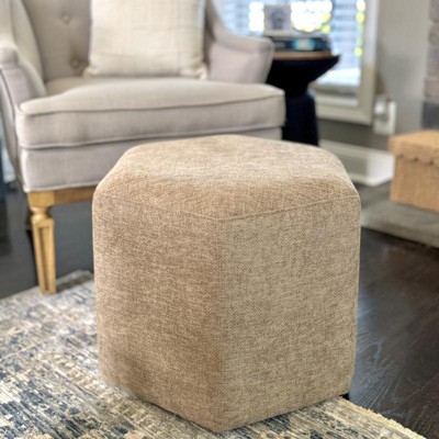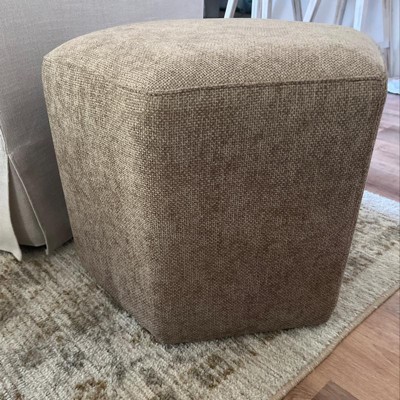 Such a unique shape, love that it is different from typical square cubes. For under $100 this such a great versatile neutral piece. Simple clean lines add to the softness. Sturdy enough to sit on.