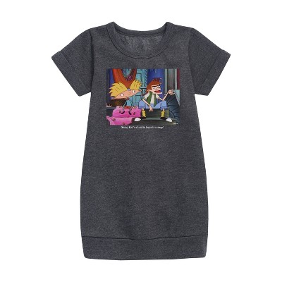 Hey Arnold! - Valentine's I Love You - Toddler And Youth Girls Fleece Dress - Rock your style with Hey Arnold! graphic apparel. Featuring Arnold, Helga, and the gang, these designs bring the heart and humor of this beloved animated series about growing up in the big city.