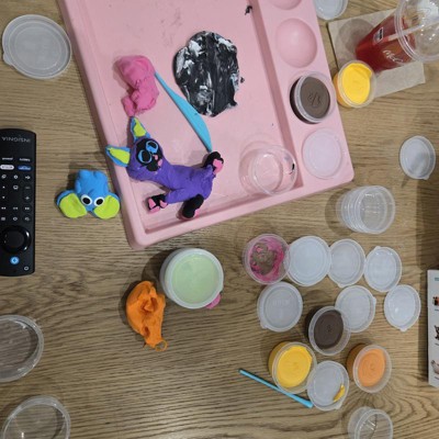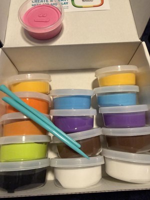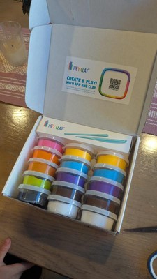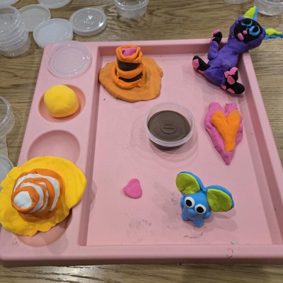Perfect clay kit. Comes with 15 different colors with the Perfect amount of clay. Not sticky, great soft texture. Doesn't stick to furniture. Easy to mold. Kept kids busy and occupied without huge mess.
