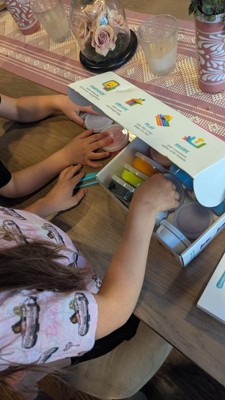 This is a great foam clay kit for kids. I love how it’s not super sticky and it’s got a nice, soft texture. My biggest complaint is literally that there’s only one pink. One. My daughter will not hush up about it. The app is cute but I don’t dare to post the atrocities I’ve created for my children as I am a human with no artistic talent and toes for fingers. My kids did get a kick out of them though!