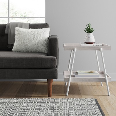 Neatly display a lamp or vase on this Hillside Side Table from Project 62. The light-washed wood finish and clean lines are easy to coordinate with any home decor, while a tiered structure provides additional storage space and its ingenious raised edges prevent items from falling off the top. Fill the bottom shelf of this modern side table with your favorite books or knickknacks, and pair it with a white accent rug to tie together the look of any room in your home.