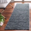 Enhance your home with the elegant appeal of this handloomed runner rug. Measuring 2 feet 3 inches by 8 feet, its slim design is perfect for hallways and narrow spaces. The navy and grey colors blend seamlessly, offering a sophisticated touch to any decor. Crafted in India, the rug features a simple solid tonal style that adds subtle character without overwhelming your space.
