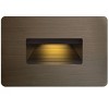 This contemporary, energy-efficient landscape lighting matte bronze low voltage step light is made from durable zinc-aluminum alloy and features an open face with a ribbed slope interior instead of a traditional glass lens, enhancing its stylish minimal feel. An integrated low voltage LS-4 LED module illuminates from the top and creates a beautiful green energy accent as well as providing guidance and safety wherever it's installed. This chic ADA compliant light fixture is from Hinkley Landscape. Works with existing low voltage landscape lighting systems.