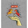 Show the world your funny side with this apparel featuring a big, colorful graphic of two horses in the palm of a hand - "Hold Your Horses!" - an eye-catching and humorous image that has been professionally printed for long-lasting print quality. Thoughtfully designed for comfort and style, this apparel is made of high-quality materials that make it perfect for all-day, any-day wear. And when it's time for cleaning, simply machine wash it cold and tumble dry on low for effortless care.