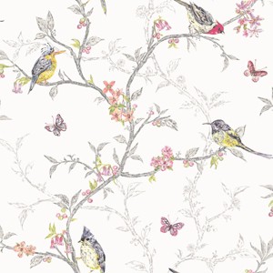 Phoebe Trail by Holden is an enchanting bird trail design featuring butterflies. The hand drawn designs helps soften the walls with pops of color from the birds and flowers adding a little contrast whilst not being overpowering. This design has a shimmering mica silhouette branch trail in the background that helps reflect light back into the room.