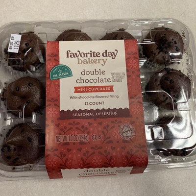 Christmas Double Chocolate Mini Cupcakes filled with Chocolate - 10oz/12ct - Favorite Day™