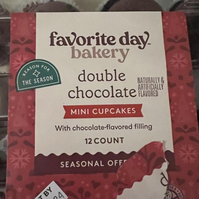 [This review was collected as part of a promotion.] These Favorite Day Double Chocolate mini cupcakes are delicious! They have an excellent chocolate flavor! They don't taste cheap or artificial. The cake is not dry and the frosting is yummy. The chocolate flavor is excellent. My oldest daughter and I loved how chocolatey they are. My younger daughter thought they were too chocolatey but she tends to favor vanilla. So keep that in mind if buying these, they are definitely made for chocolate lovers! They are a delicious chocolate treat and I do recommend. I am taking off a star though for a couple reasons. Reason one is because the package says they have a chocolate filling. They definitely are not filled. Just frosted on top. You can see in my picture the filling is nonexistent. The online description also says triple chocolate. But the packaging says double chocolate. These are some misleading errors that Target needs to fix. I was a bit sad they had no filling. Good thing the delicious chocolate flavor made up for it. They are good! I received an incentive to write this review.