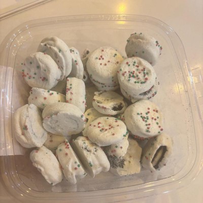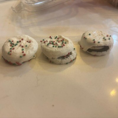[This review was collected as part of a promotion.] I wasn’t sure what to expect with these based on the name holiday enrobed, but these little bites were pretty good. They were a tad bit too sweet for my liking, although my kids loved them! They consist of a little chocolate cookie with vanilla filling, then covered in chocolate. Then topped with sprinkles. I think these would be a great addition to a cookie tray or charcuterie board because it is nice they are bite size. With how sweet they are it’s great they are small! I do with there were a few more sprinkles on them, it looks like maybe there were more and most fell off.