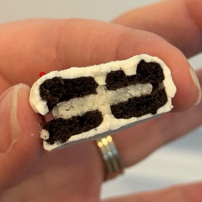 chocolatey cookie with vanilla cream (enriched flour [wheat flour, niacin, reduced iron, thiamine mononi- trate, riboflavin, folic acid], sugar, vegetable oils [soybean oil, hydro- genated soybean oil], dextrose, cocoa [processed with alkali], high fructose corn syrup, cocoa, soy lecithin, salt, ammonium bicar- bonate, artificial vanilla flavor, monocalcium phosphate, sodium bicarbonate), white confectionery coating (sugar, palm kernel oil, nonfat dry milk, lactose, titanium dioxide [color], soy lecithin, dis- tilled monoglycerides, natural & artificial vanilla flavor), nonpa- reils (sugar, corn starch, confec- tioner's glaze, colors [red 3, blue 1, fd&c yellow no. 5, red 40, yellow 6], carnauba wax).' '