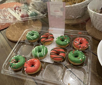 [This review was collected as part of a promotion.] These are your typical classic donuts but mini sized. The sizing is a great idea for a holiday tray or a breakfast option when people are staying over. The dough part is a bit thicker than normal. It's soft and fluffs back up when squeezed. The icing is also your typical classic donut icing and pairs well with the dough taste. The decorations are simple yet just enough with the few variations they have. These are a good find. Note I left them in the container for a couple of days and they started to form condensation so I would put them in a different container if you won't eat them for a few days to preserve them better. I received an incentive to write this review.