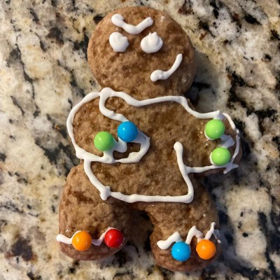 cookie mix (wheat flour enriched [wheat flour, malted barley flour, niacin, reduced iron, thiamin mononitrate, riboflavin, folic acid], brown sugar [sugar, cane syrup], spices [cinnamon, ginger, cloves, all- spice], baking soda, salt, silicon diox- ide), icing tubes (sugar, water, corn syrup, maltodextrin, corn starch, glyc- erin, natural and artificial flavor, palm oil, titanium dioxide [color], sodium alginate, salt, potassium sor- bate [preservative], citric acid, calcium sulfate, mono- and diglycerides, poly- sorbate 60), candy beads (dextrose, corn syrup, citric acid, calcium stea- rate, tapioca dextrin, titanium dioxide [color], confectioner's glaze, car- nauba wax, artificial flavors, red 40, yellow 5 blue 1)' '