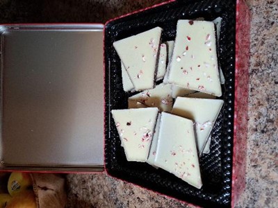 I look forward to peppermint bark every year. This is not it! The only good thing about this bark is that the tin is cute. I’ve had it on my counter a month and no one will eat it.