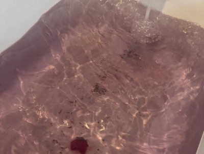It sunk straight to the bottom with very few bubbles or fizz, it didn’t dissolve all the way. The color is good if that’s all you want in a bath bomb but there’s absolutely no scent. The “sprinkles” also didn’t dissolve and created weird floating stuff…?