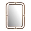 This antique gold metal mirror creates a captivating illusion of floating on your wall. The frame boasts meticulously rattan wrapped joints for a seamless, polished look, enhancing the mirror's weightless appearance. More than just a reflection, this mirror is a work of art that adds a touch of timeless elegance to any space. The warm antique gold finish complements a variety of decors, creating a touch of vintage glamour.