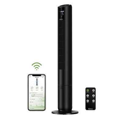 Holmes 42" Smart Connect Wi-Fi Digital Oscillating 5 Speed Tower Fan with Clear Read Display and Remote Control Black